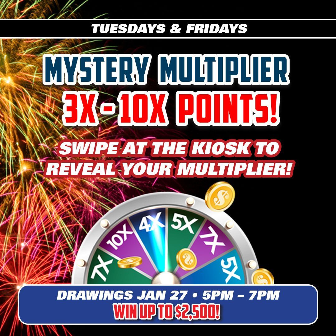 Up to 10x Points Every Tuesday & Friday! Swipe at the Promo Kiosk To reveal your multiplier for the day!